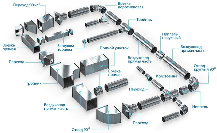 Круглые и прямоугольные для обще-обменной вентиляции и кондиционированию воздуха